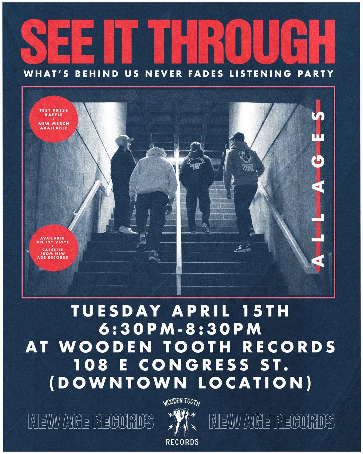 Wooden Tooth Records will be hosting Tucson's own See It Through for a record listening party at their Downtown Tucson location. We will be celebrating their debut EP release “What’s Behind Us Never Fades” on New Age Records leading up to their release show on Saturday April 19th. This event starts at 6:30pm.
